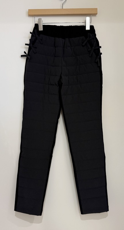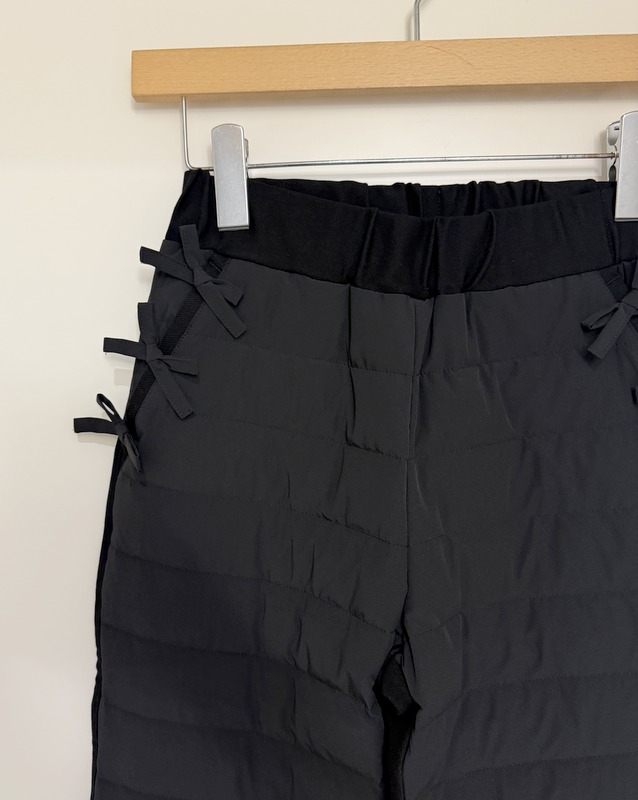 COLOR:ブラック SIZE:S・M MATERIAL:(前身頃)ポリエチレン87%ポリウレタン13%(後身頃)レーヨン56%ナイロン39%ポリウレタン5% ( 中綿)ダウン90%フェザー10%