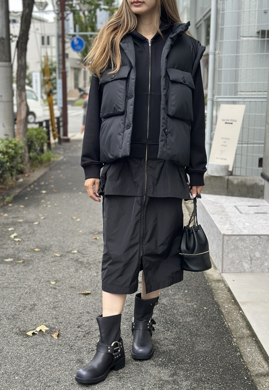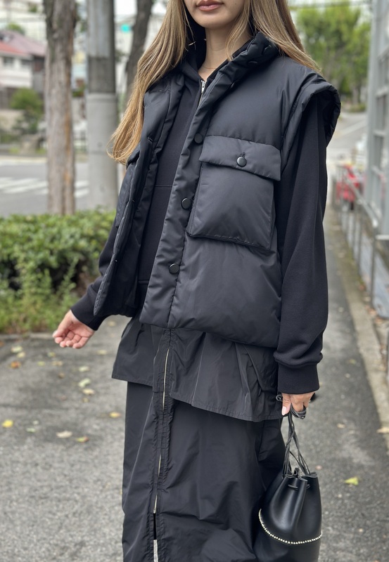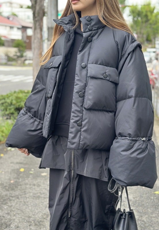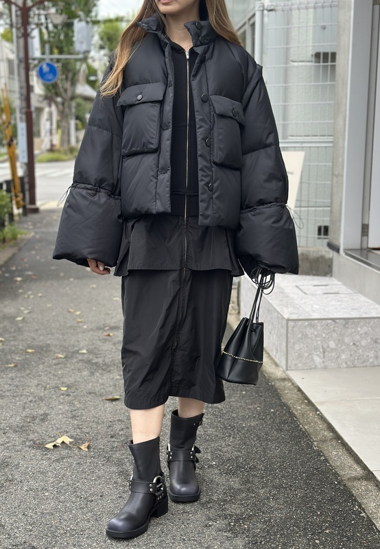 COLOR:ブラック SIZE:1 MATERIAL:COMPO)ポリエステル100% RIB)ウール100% LINING)ポリエステル100% PADDING)ダウン100%・フェザー20%