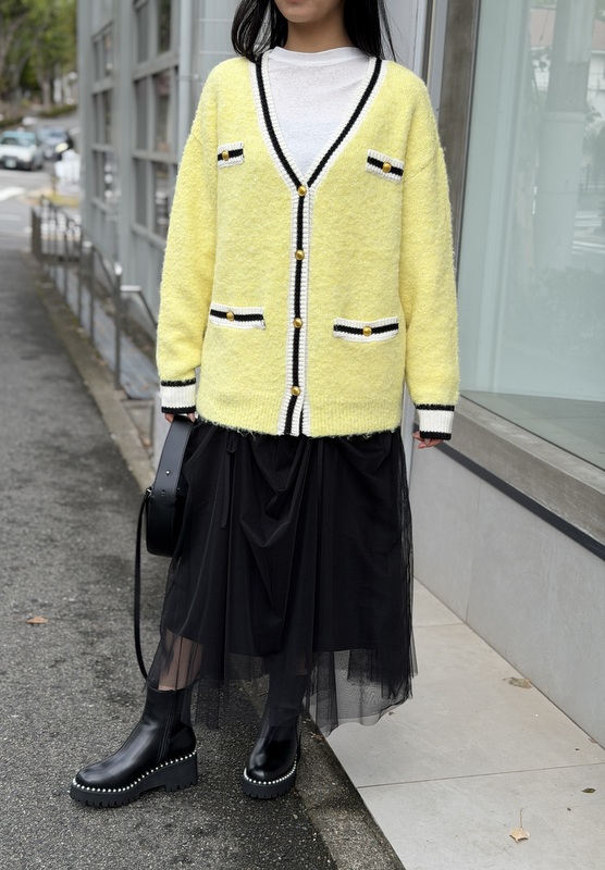 COLOR:ホワイト・イエロー・ブラック SIZE:38 MATERIAL:ポリエステル73%・ナイロン15%・ウール10%・ポリウレタン2% リブ)アクリル85%・ウール15%