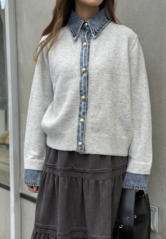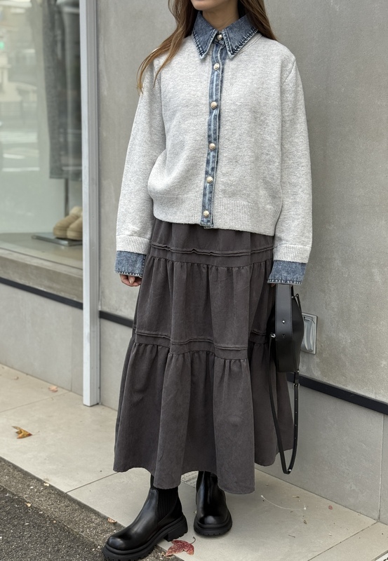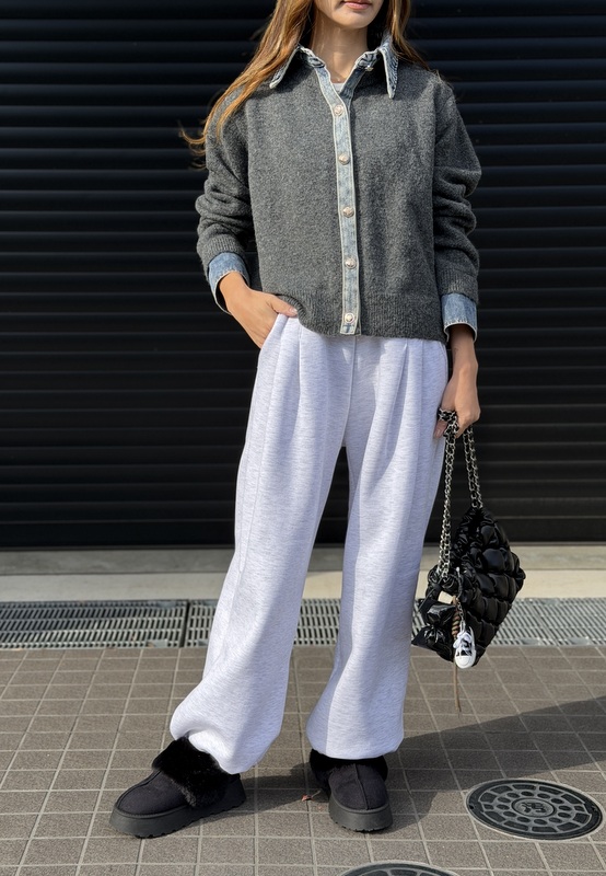 COLOR:アイボリー・ライトグレー・ダークグレー SIZE:02 MATERIAL:ポリエステル61%・アクリル15%・綿15%・毛6%・ポリウレタン3% 別布)綿100%