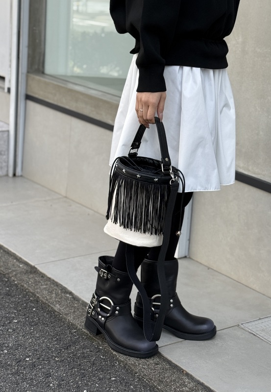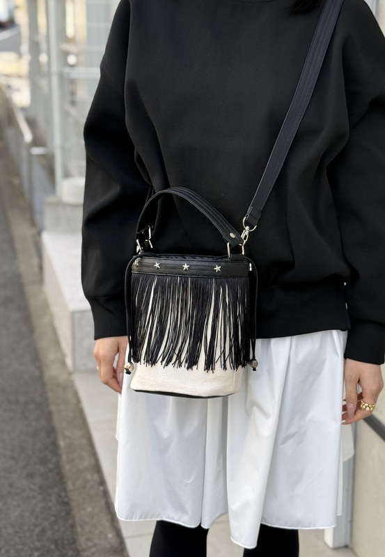 バケツ型フリンジスタースタッズ2WAYバッグ