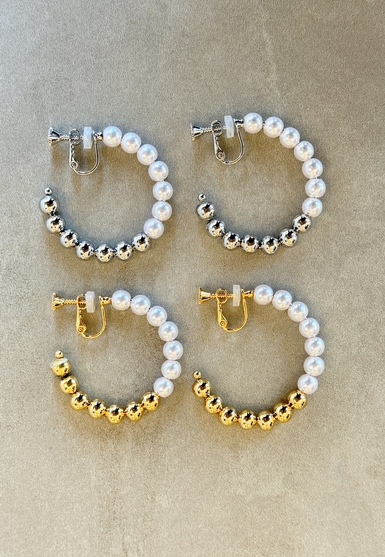 COLOR:ゴールド・シルバー SIZE:F MATERIAL:真鍮・アクリルパール