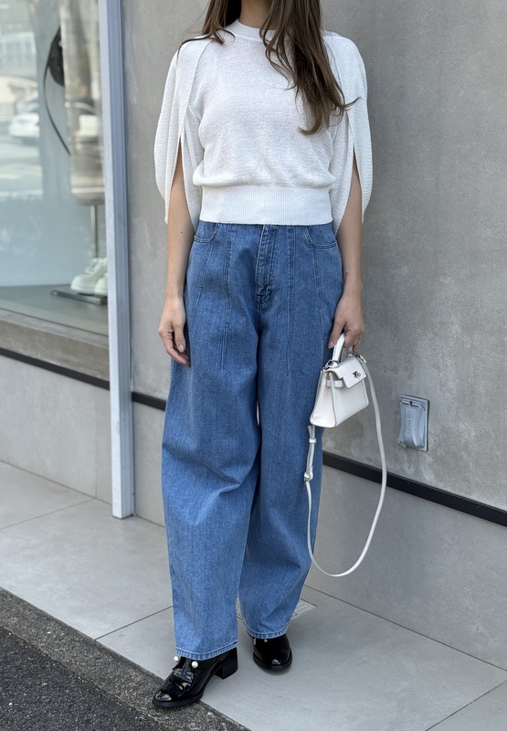 COLOR:ホワイト・ブラック SIZE:1 MATERIAL:ラミー66%ナイロン26%ポリエステル4%キュプラ4%