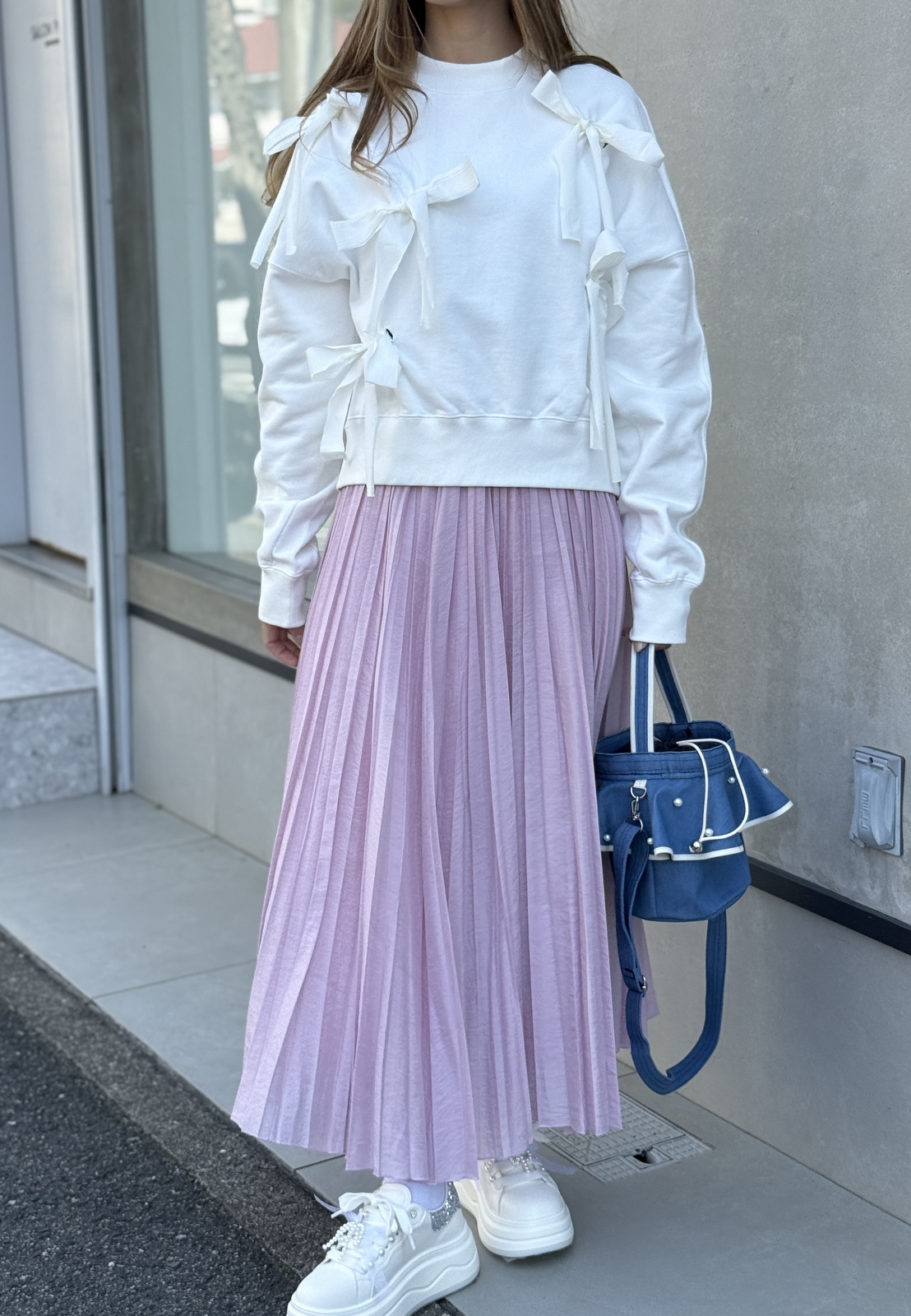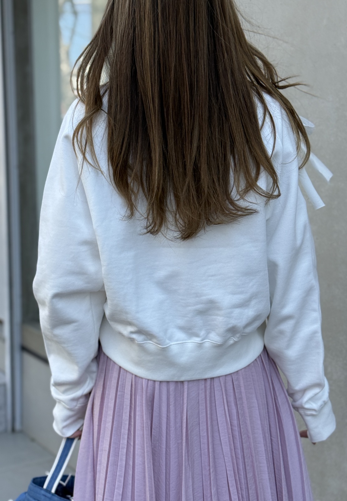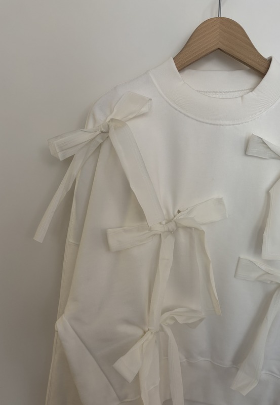 COLOR:ホワイト SIZE:F MATERIAL:綿100% リブ)綿97%・ポリエステル3% リボン)ポリエステル58%・綿42%